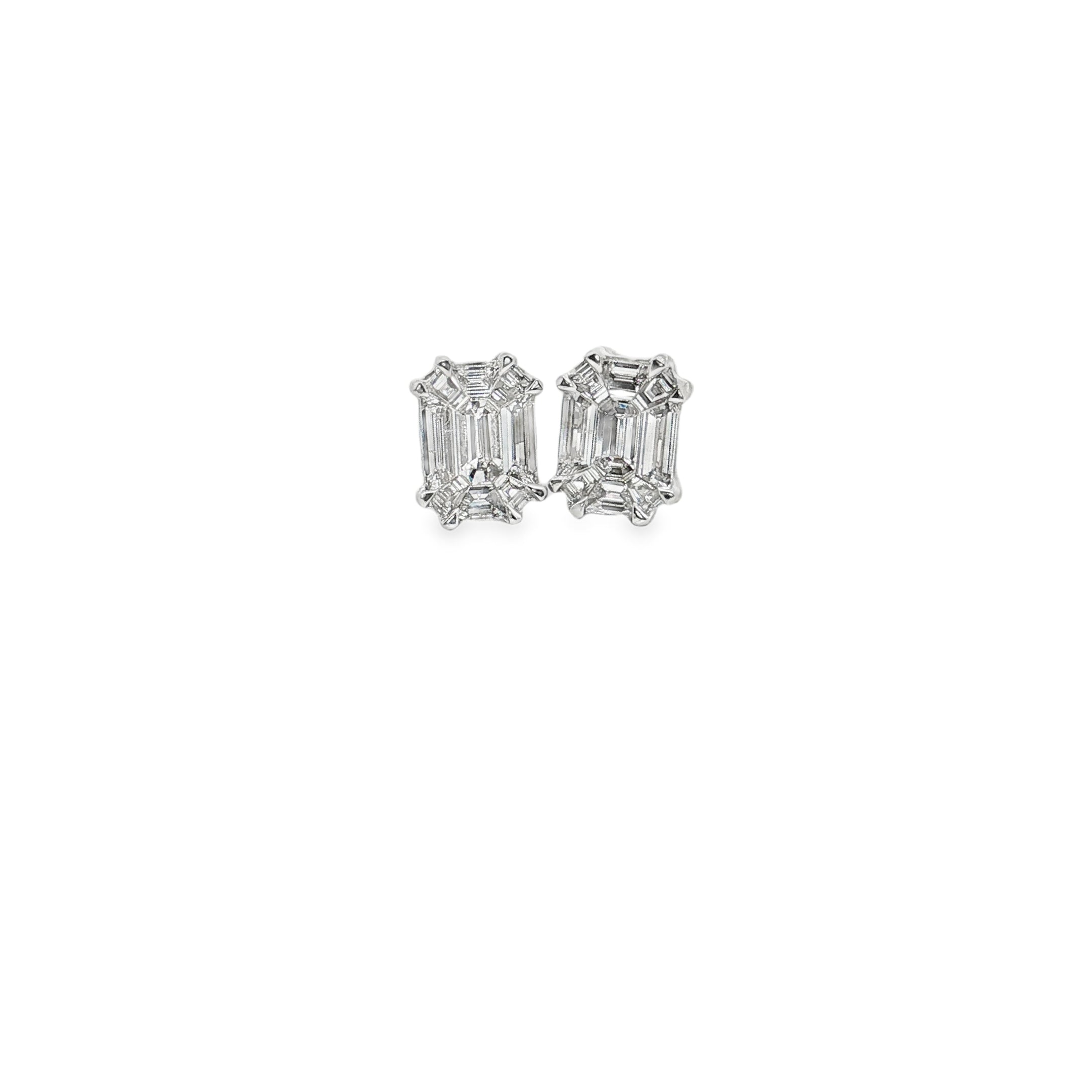 14k white gold illusion set emerald shape diamond stud earrings 0.95ctw
