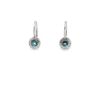 14k white gold round blue topaz with diamond halo drop earrings 0.09ctw