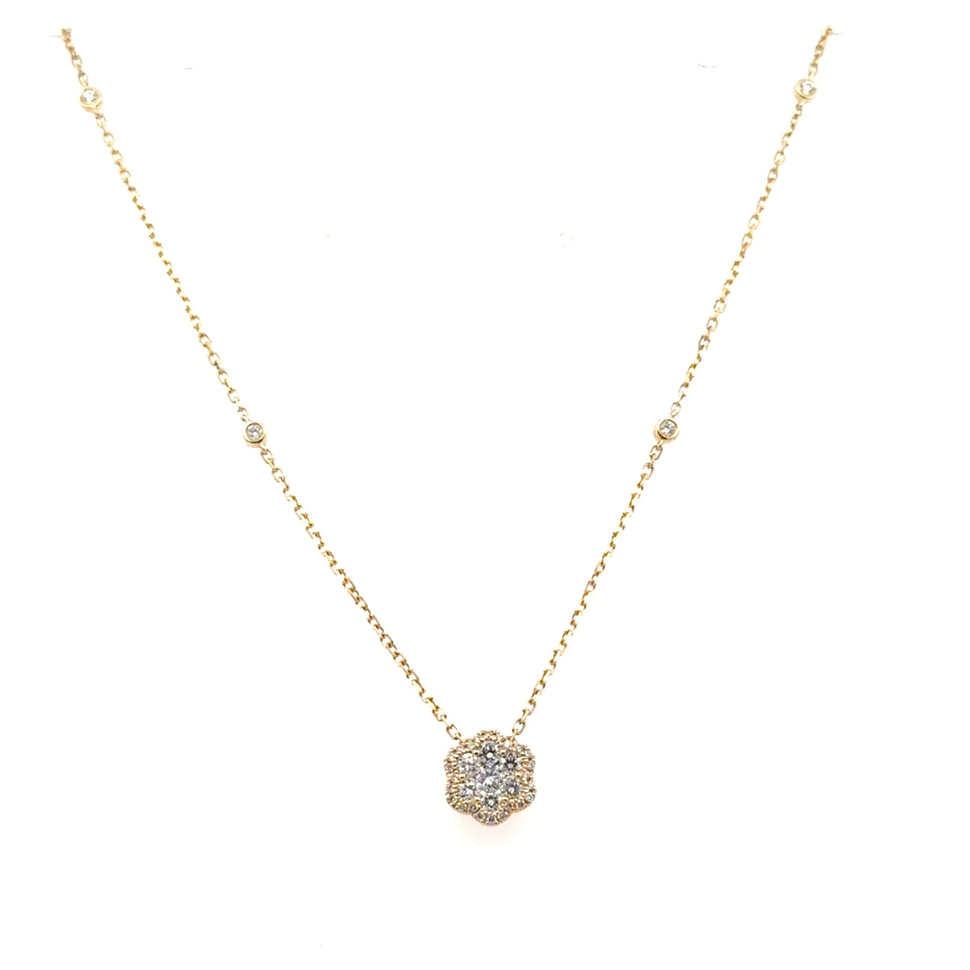 14k yellow gold diamond flower pendant on chain necklace 0.63ctw 18"