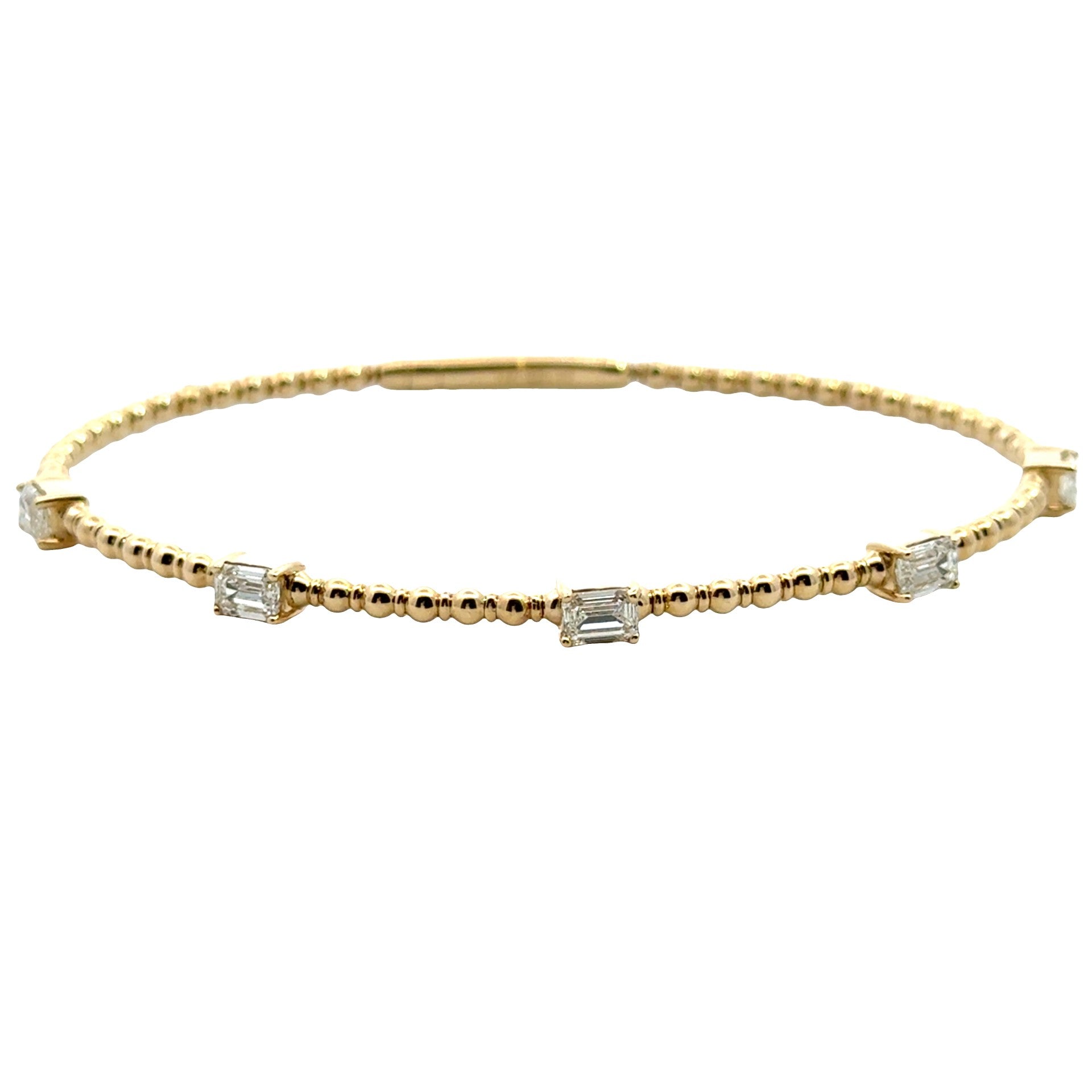 14k yellow gold flexible bracelet with 5 emerald cut diamond stations 1.32ctw