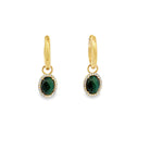 14k yellow gold oval malachite with diamond halo dangle earrings 0.16ctw