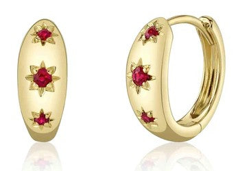 14k yellow gold ruby star hoop earrings 0.12ctw