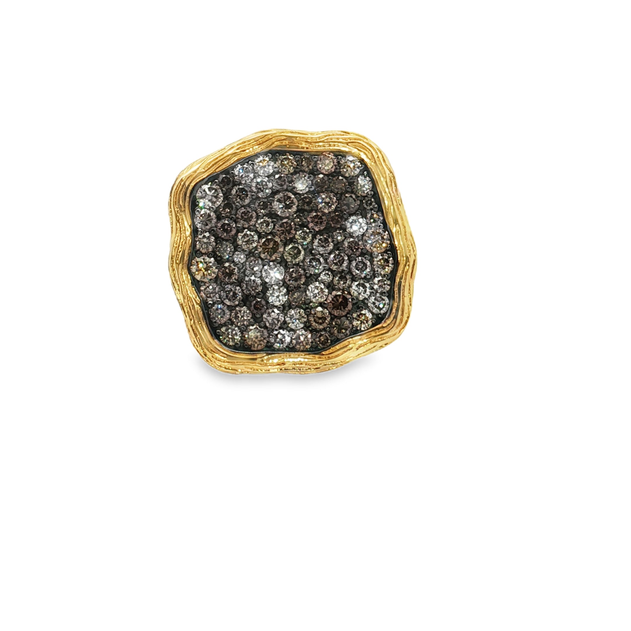14k yellow gold with etched bezel with champagne diamonds ring 2.61ctw