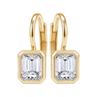 18k yellow gold bezel set emerald cut diamond on French wire earrings F VS 0.33ctw