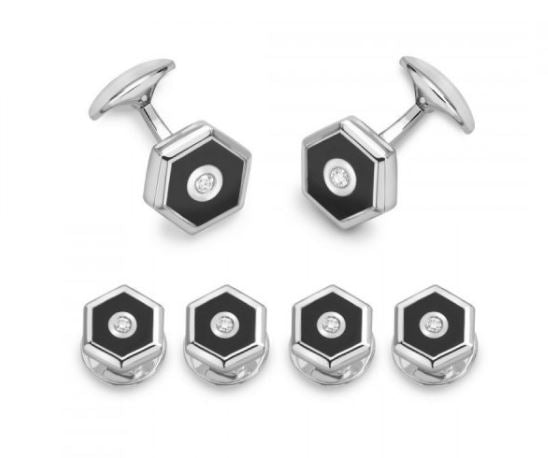 Deakin and Francis hexagonal diamond and onyx dress stud set