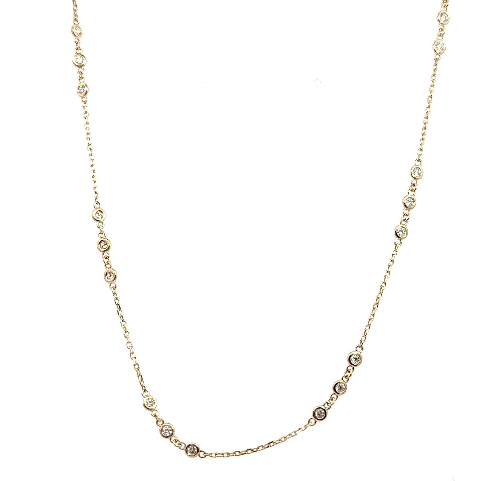 14k yellow gold diamond by the yard in line of 3 necklace 1.02ctw