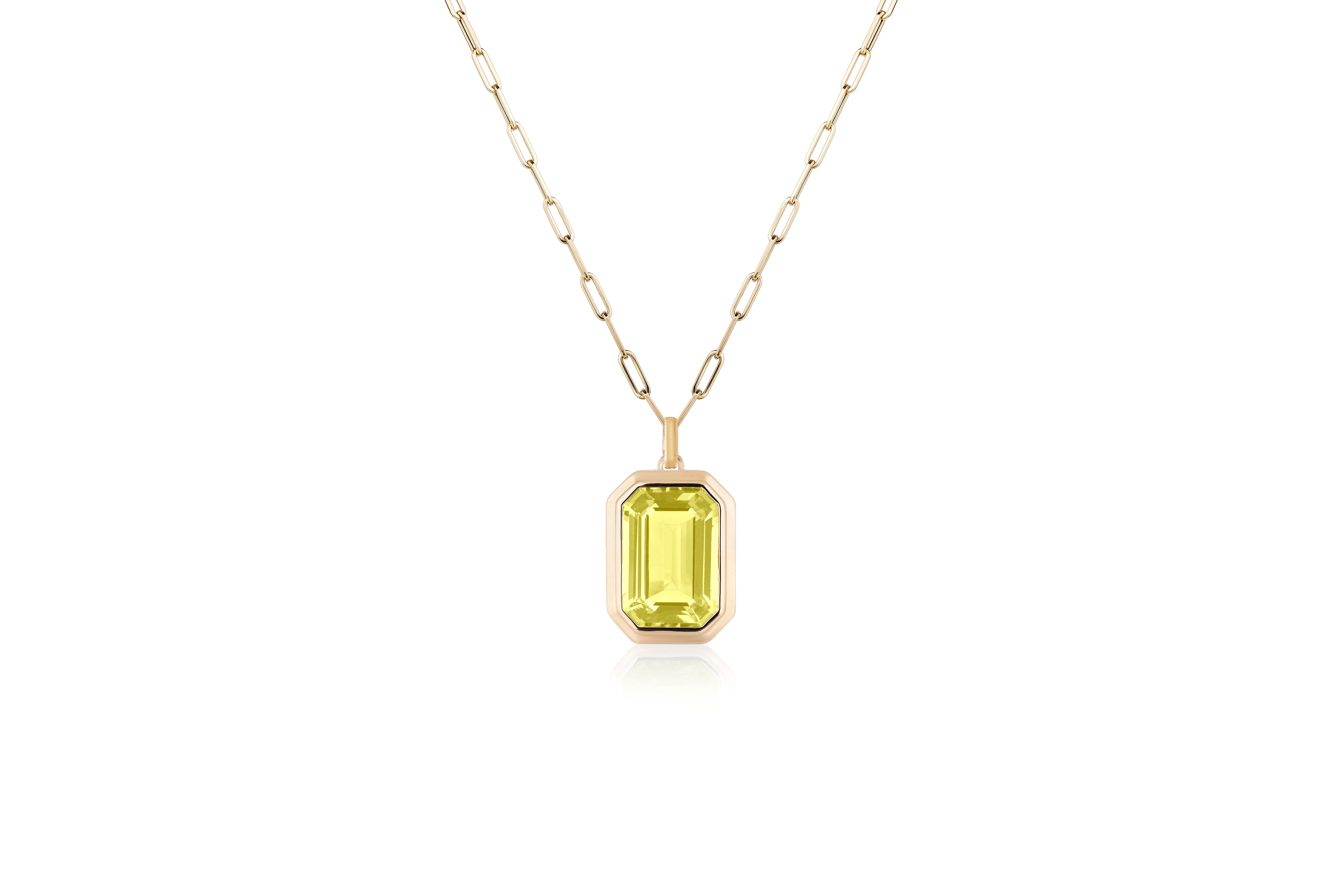 Goshwara 18k yellow gold double bezel set emerald cut lemon quartz pendant on paperclip necklace 18" 6.50ctw