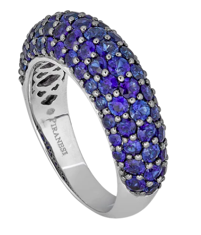 Piranesi 18k white gold blue sapphire small dome ring 3.17ctw size 7
