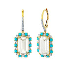 Sloane Street 18k yellow gold emerald cut white topaz with turquoise and diamond halo dangle earrings