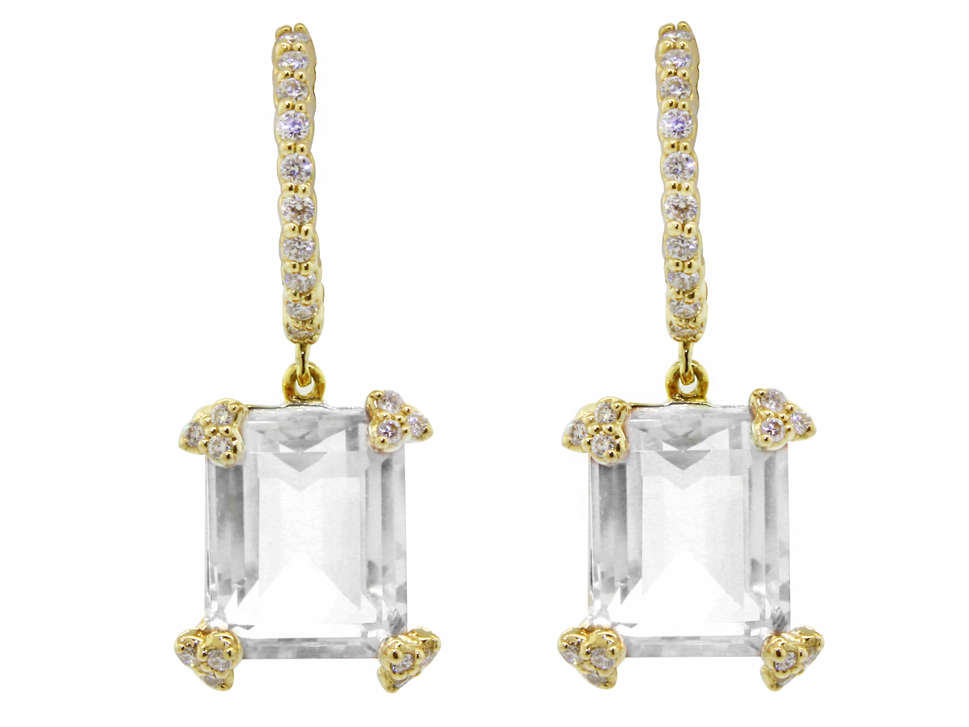 Sloane Street 18k yellow gold emerald cut white topaz and diamond dangle earrings