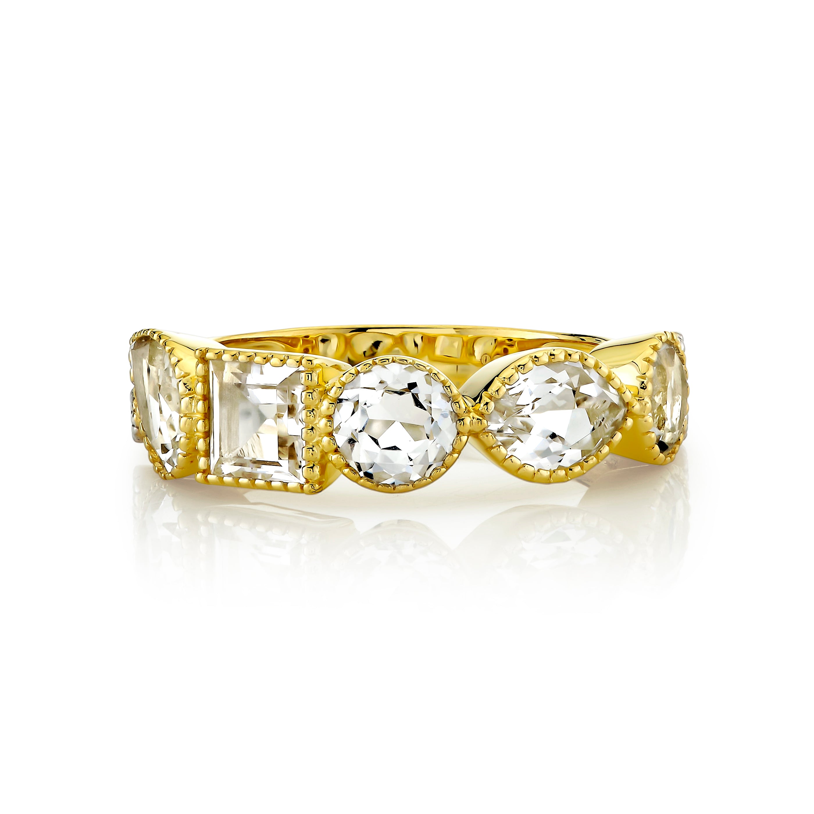 Sloane Street 18k yellow gold mixed shape white topaz with strie detail ring