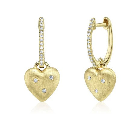 Scattered Diamond Heart Dangle Earrings