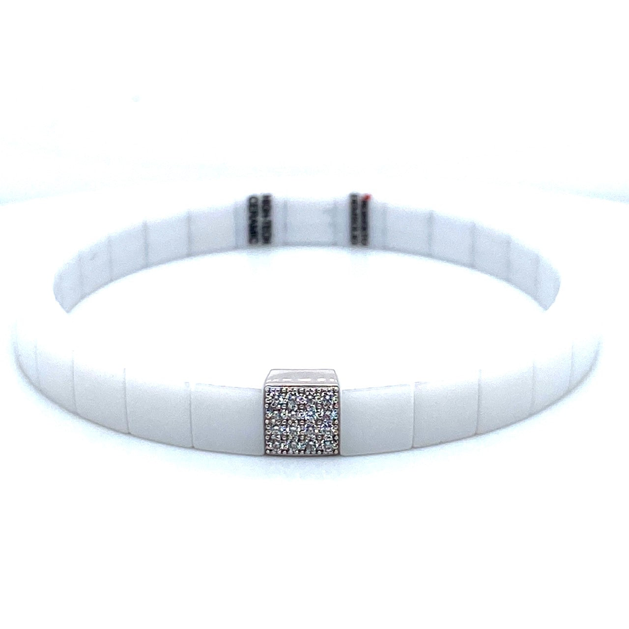 Matte Black Ceramic Bracelet with Diamond Rondels