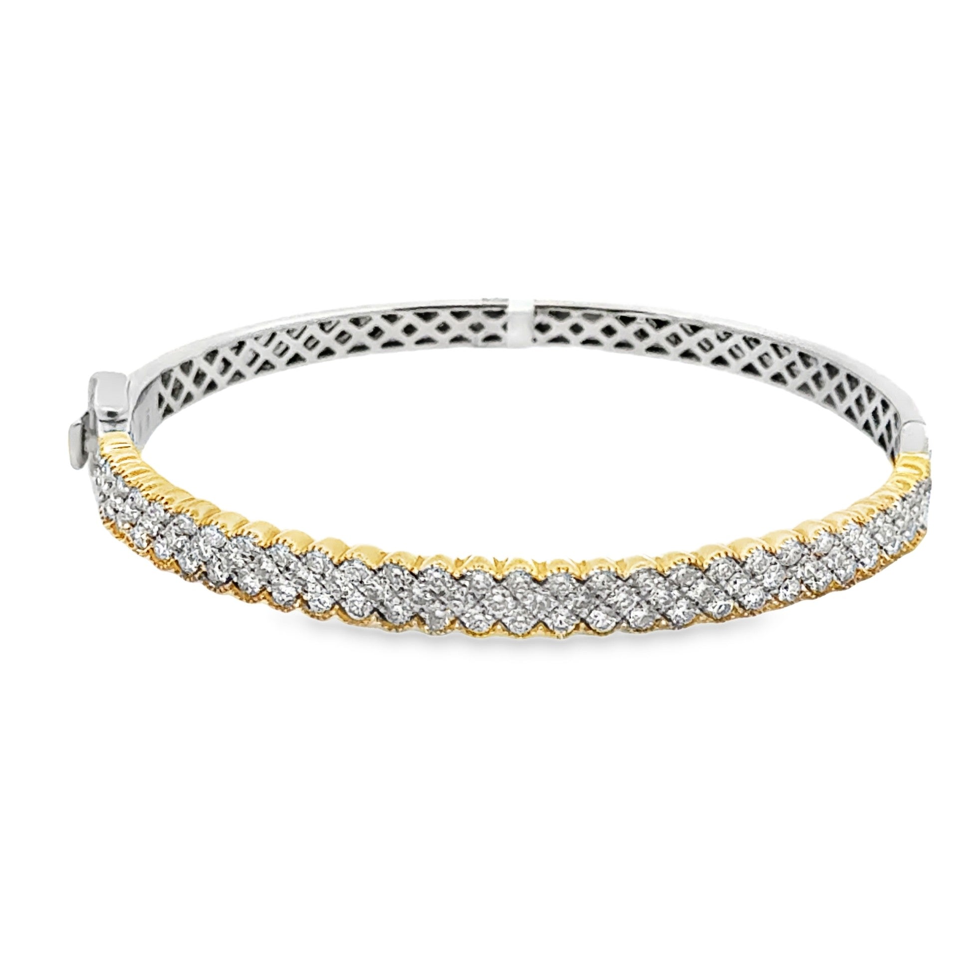14k two tone 3 row diamond bangle bracelet 1.70ctw