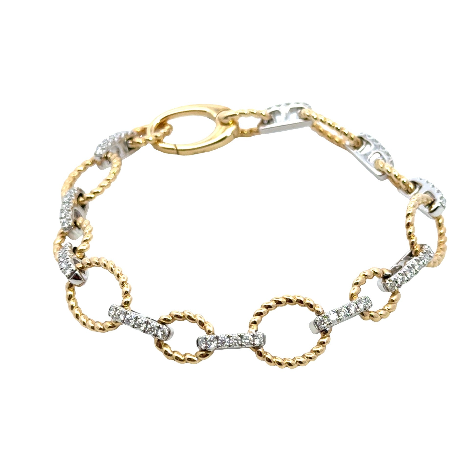 14k two tone oval open ropes wtih diamond bar in between bracelet 0.90ctw