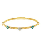 14k yellow gold stripe flexible bracelet with turquoise and diamond flowers 0.50ctw