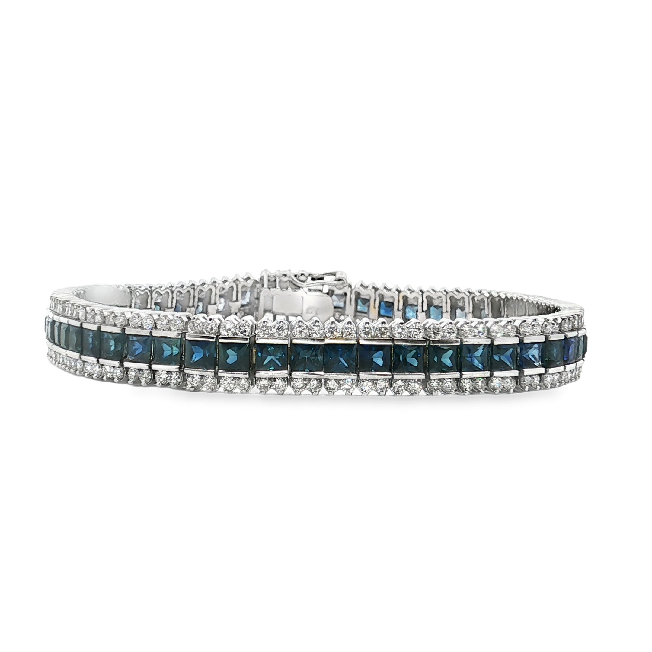 18k white gold square cut sapphire with diamonds eternity bracelet sap 7.00ctw dia 2.25ctw
