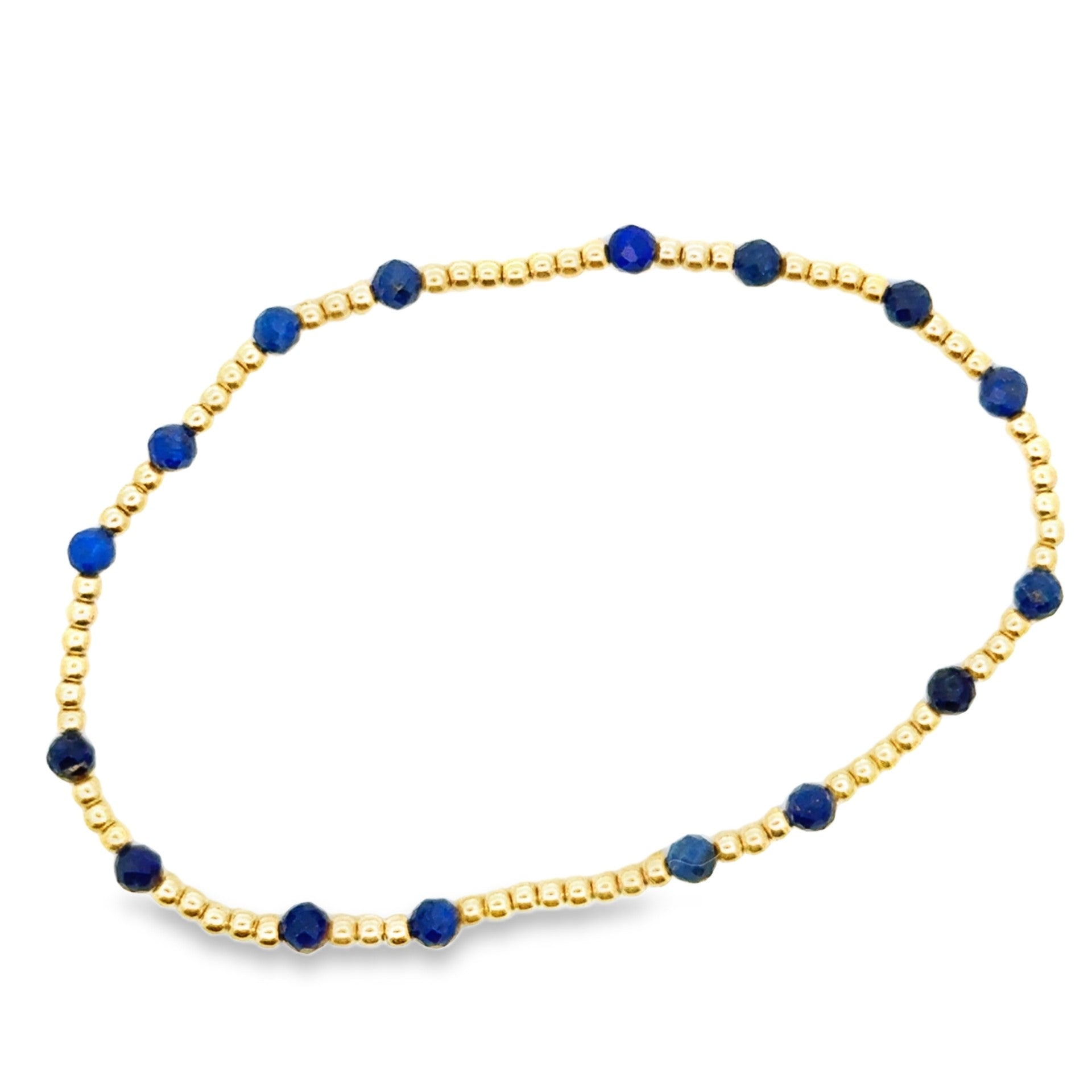 Gold filled 2mm beads with lapis beads stretch bracelet