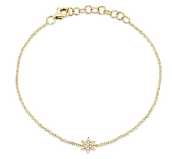14k yellow gold pave diamond star on chain bracelet 0.03ctw