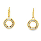 14k two tone open circle dangle drops with diamonds and 4 diamond stations 0.62ctw