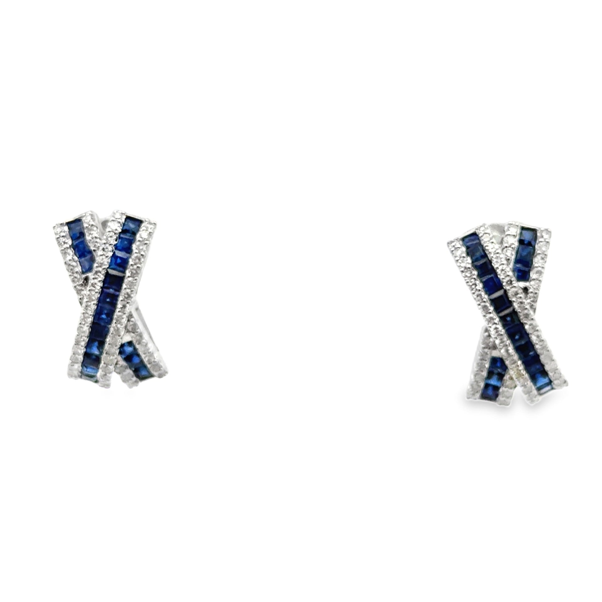 14k white gold baguette sapphire and diamond X earrings sap 1.45ctw dia 0.55ctw
