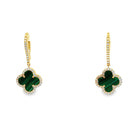 14k yellow gold clover malachite with diamond halo on diamond hoop dangle earrings dia 0.31ctw mal 4.46ctw