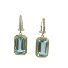 Sloane Street 18k yellow gold emerald cut sky blue topaz with strie halo on diamond half hoop earrings