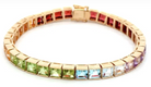 14k yellow gold semi precious square cut rainbow bracelet, 7" 20ctw