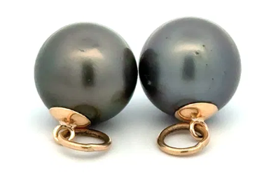 14k yellow gold Tahitian South sea pearl earring charms 12.50mm
