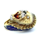 18k yellow gold and platinum enamel lion head with diamond detail ring Diamond - 0.22CTW, size 5.75