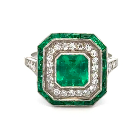 Platinum Brazilian emerald (1.18ctw) with diamond and emerald halo ring, size 7 (emerald - 1.00ctw, diamond 0.38ctw)