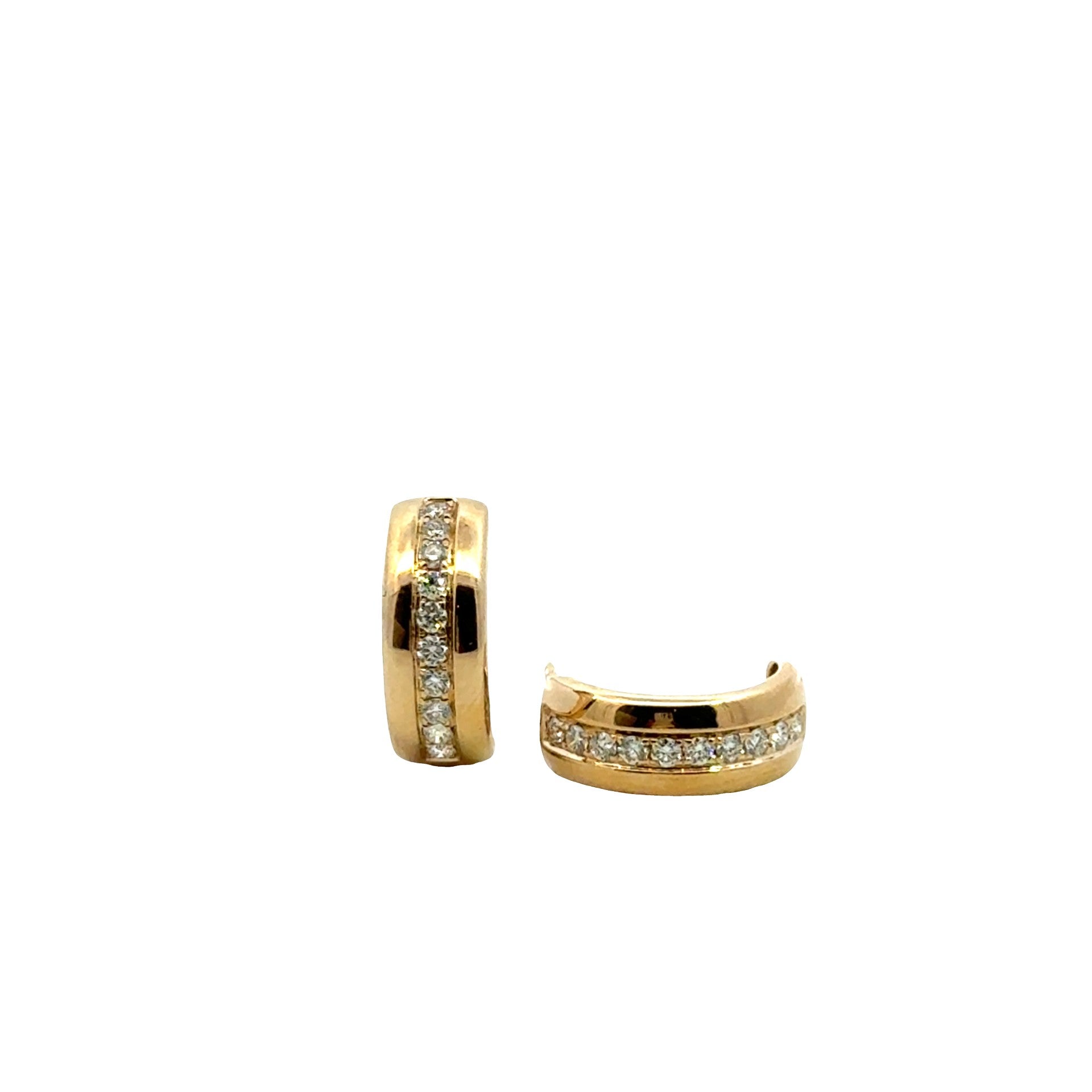 14k yellow gold hoop earrings with diamonds down the center 0.36ctw