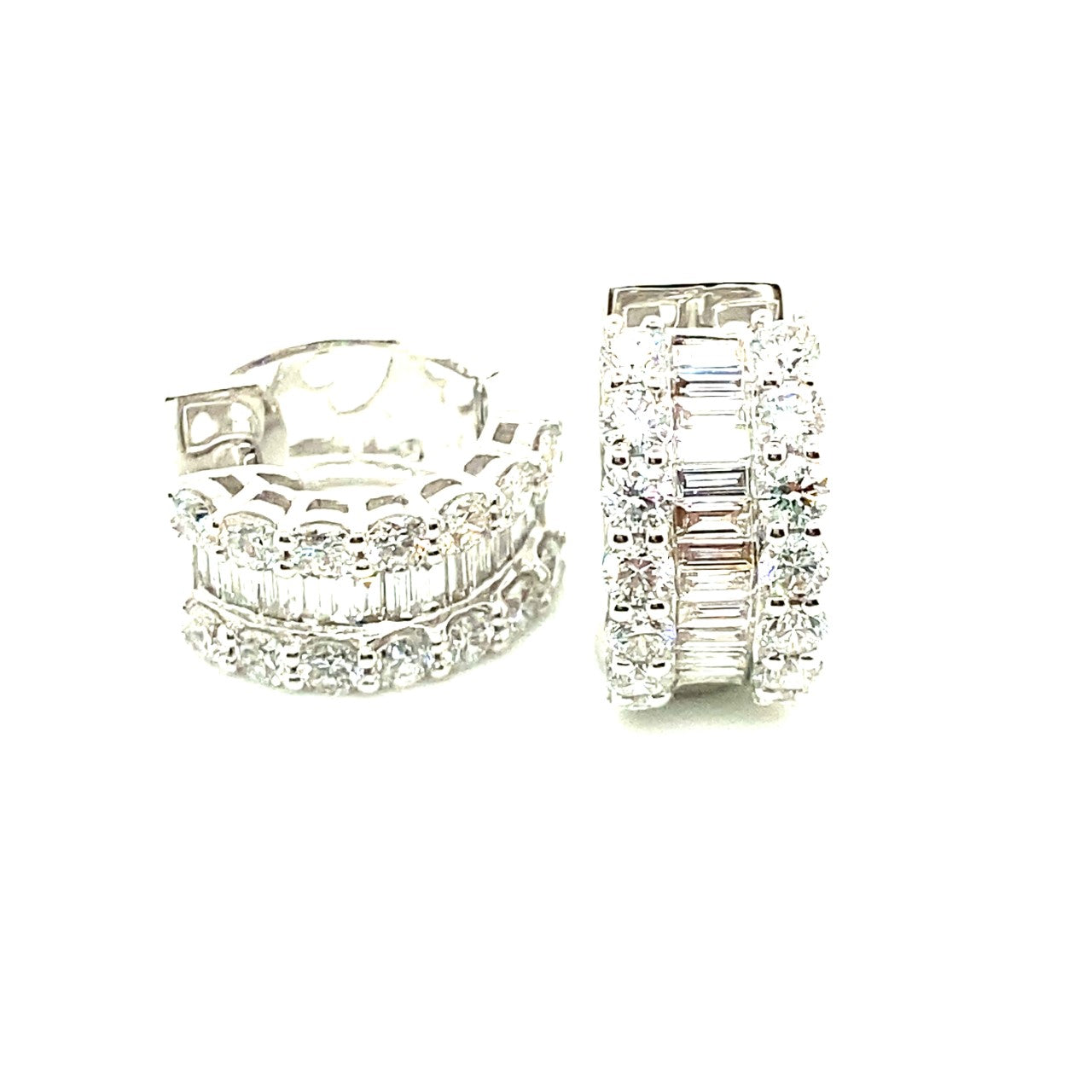 18k white gold baguette and round diamond hoop earrings 2.46ctw