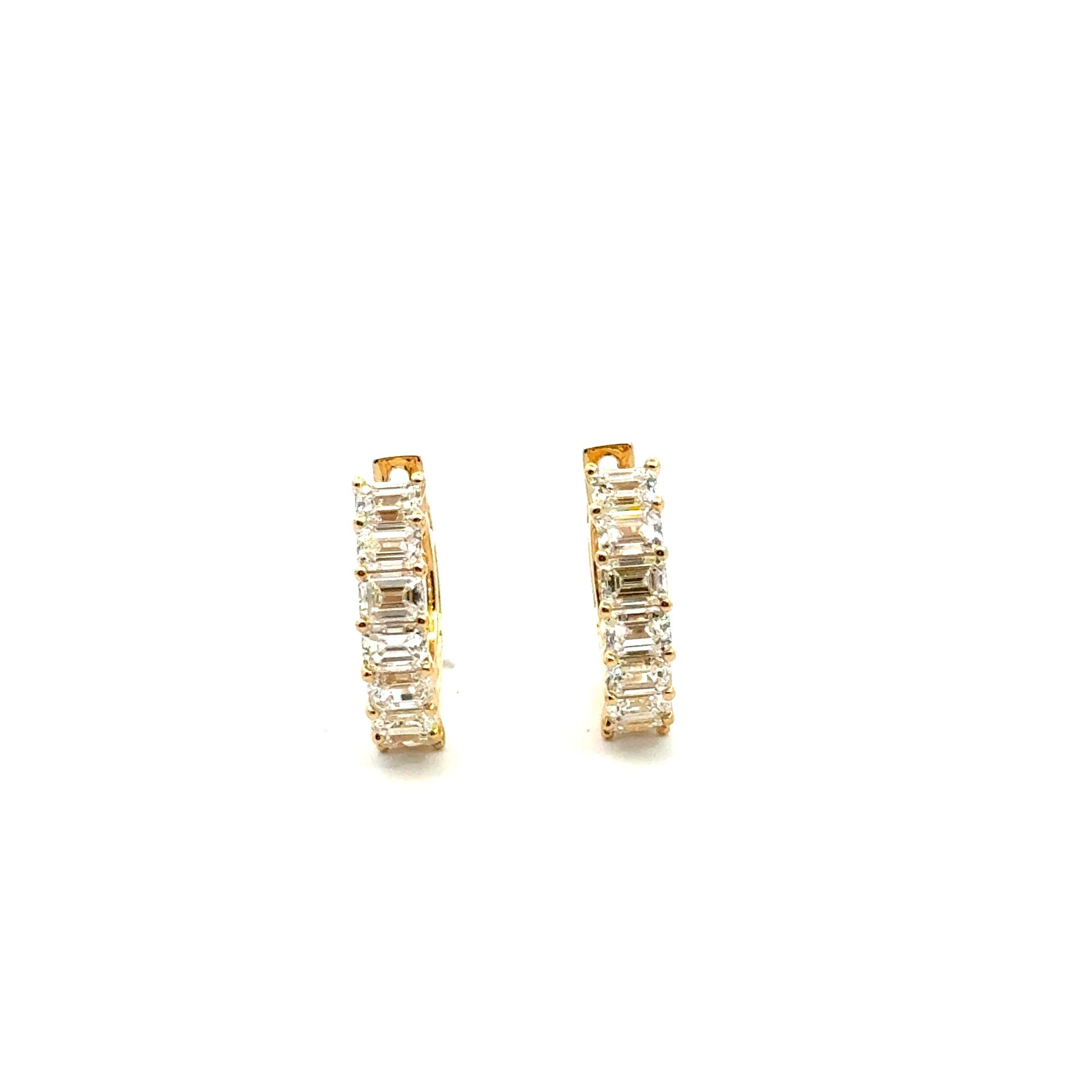 18k yellow gold emerald cut diamond hoop earrings 1.97ctw