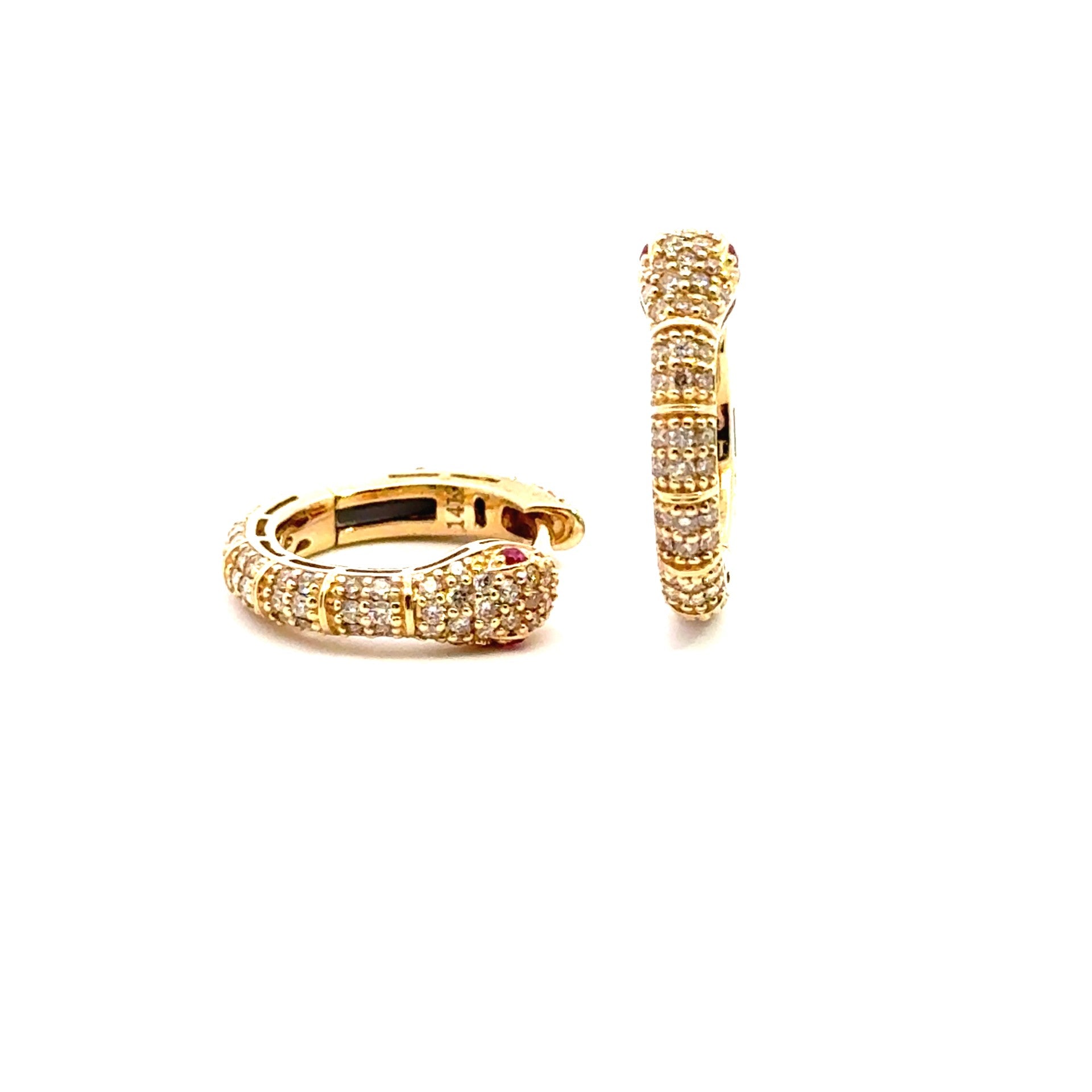 14k yellow gold diamond snake hoop earrings with ruby eyes 0.70ctw