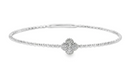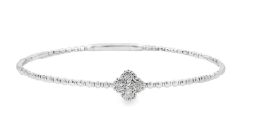 14k white gold beaded flexible bracelet with milgrain diamond flower 0.20ctw