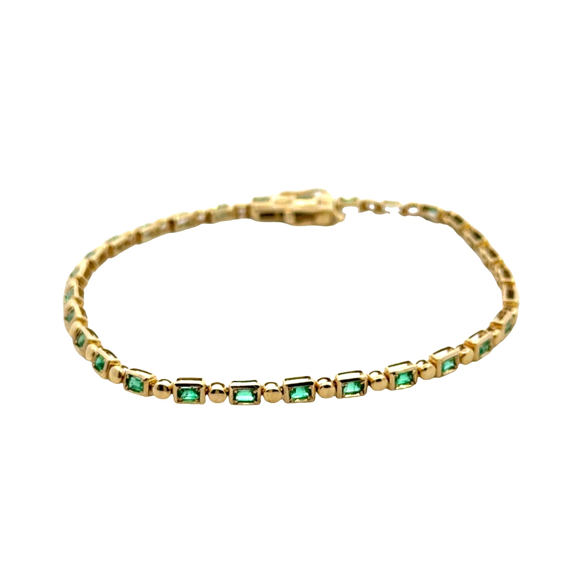 14k yellow gold alternating emerald cut bezel set emeralds and round gold stations bracelet em 0.828ctw