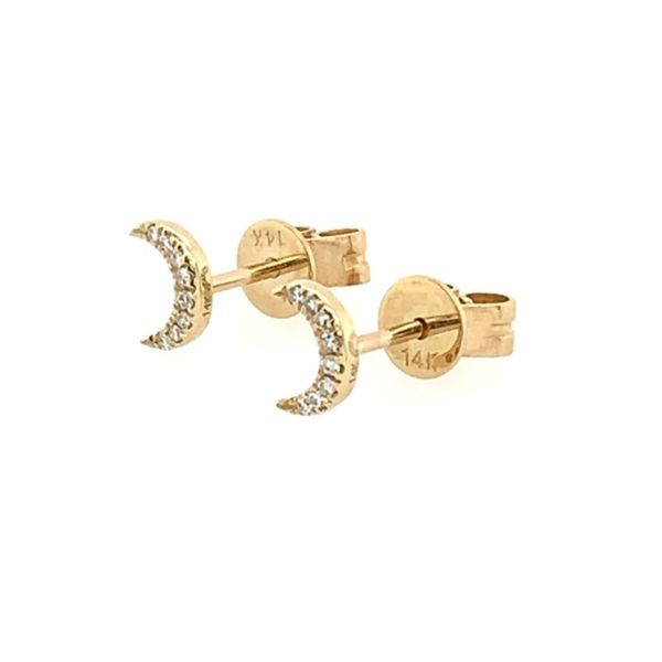 14k yellow gold diamond crescent moon stud earrings 0.04ctw