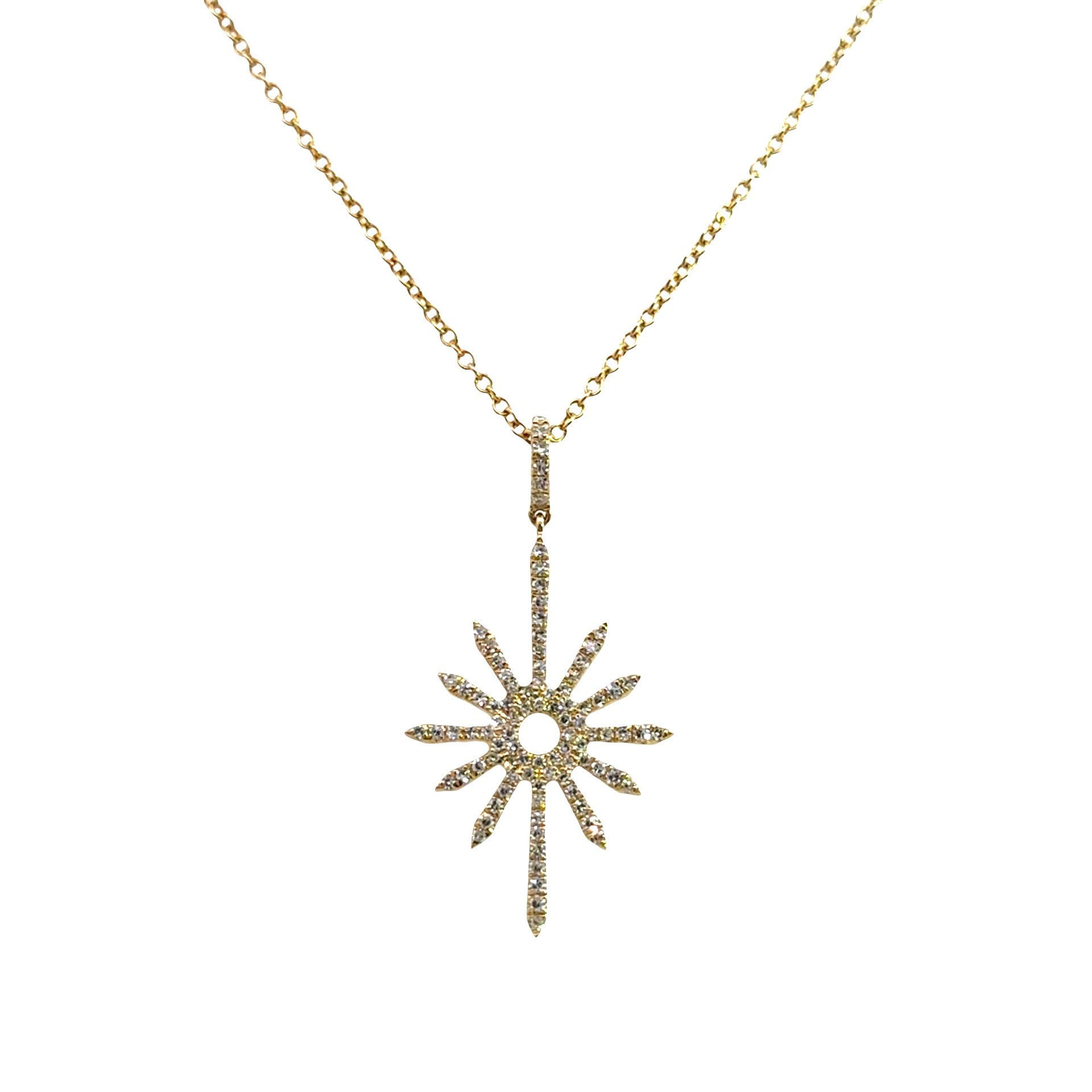 14k yellow gold pave diamond starburst on chain necklace 0.23ctw