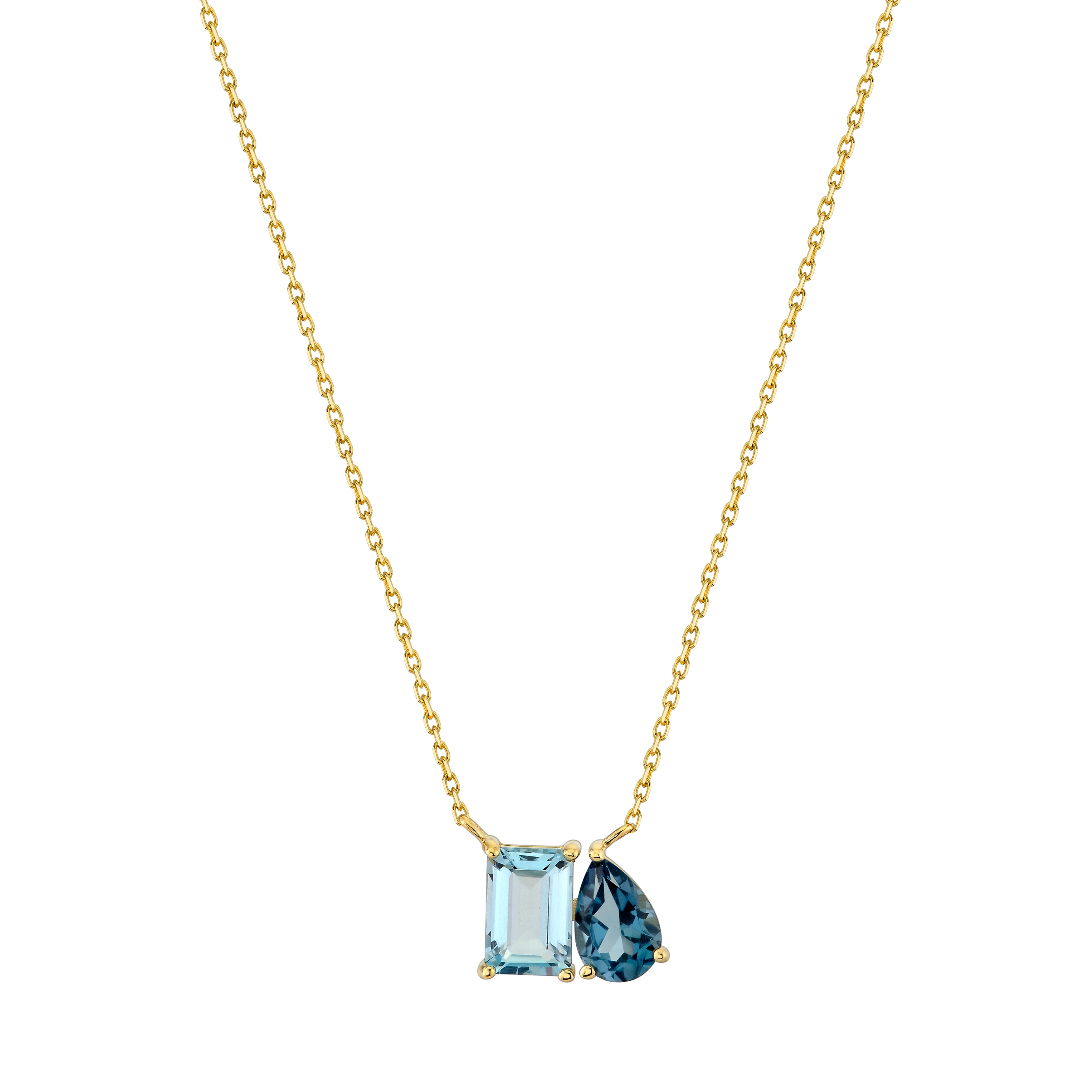 14k yellow gold pear shaped London blue topaz and emerald cut sky blue topaz on chain necklace lb 0.49ctw sb 0.68ctw 16-18"