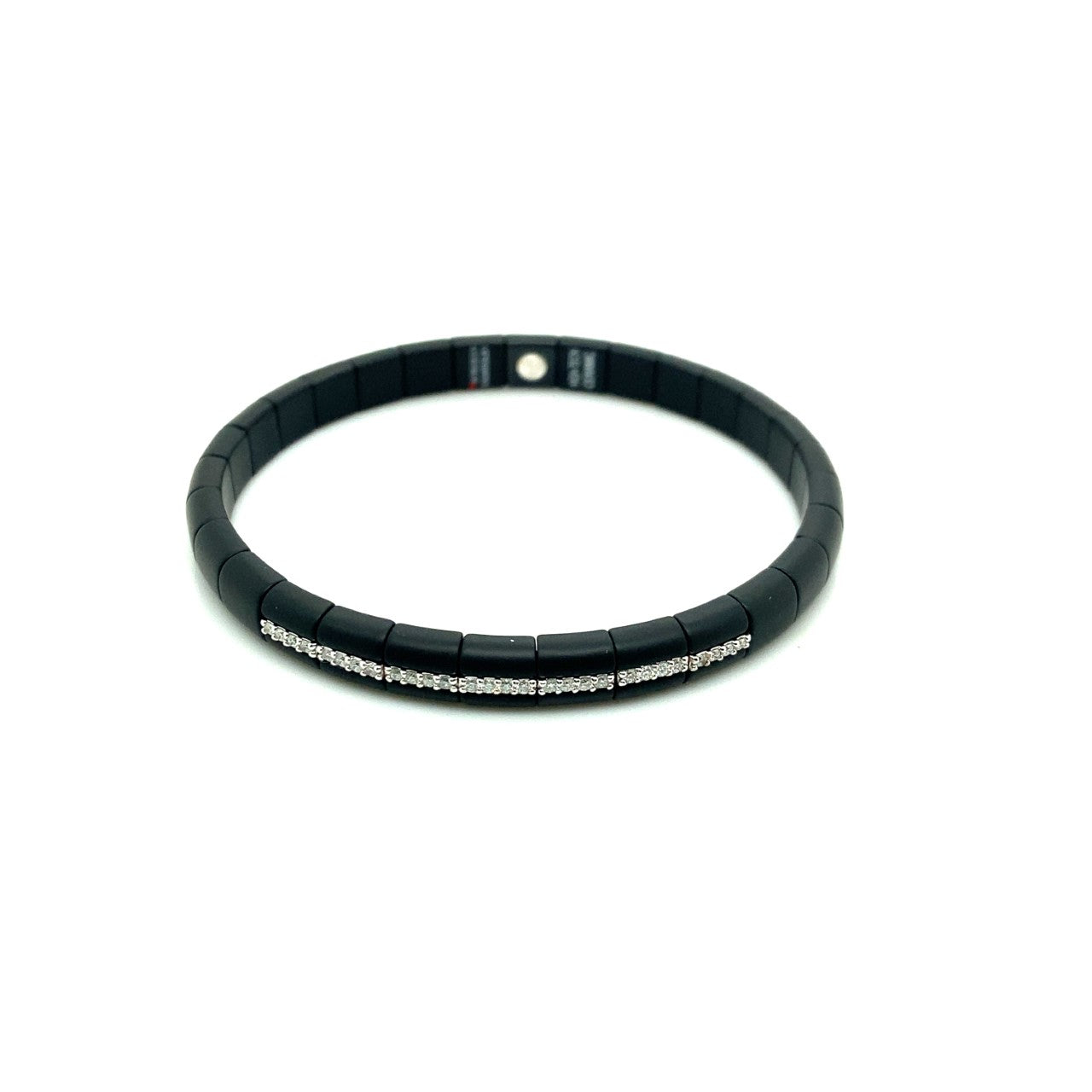 18k white 5 horizontal pave diamond bars in matte black stretch bracelet 0.25ctw