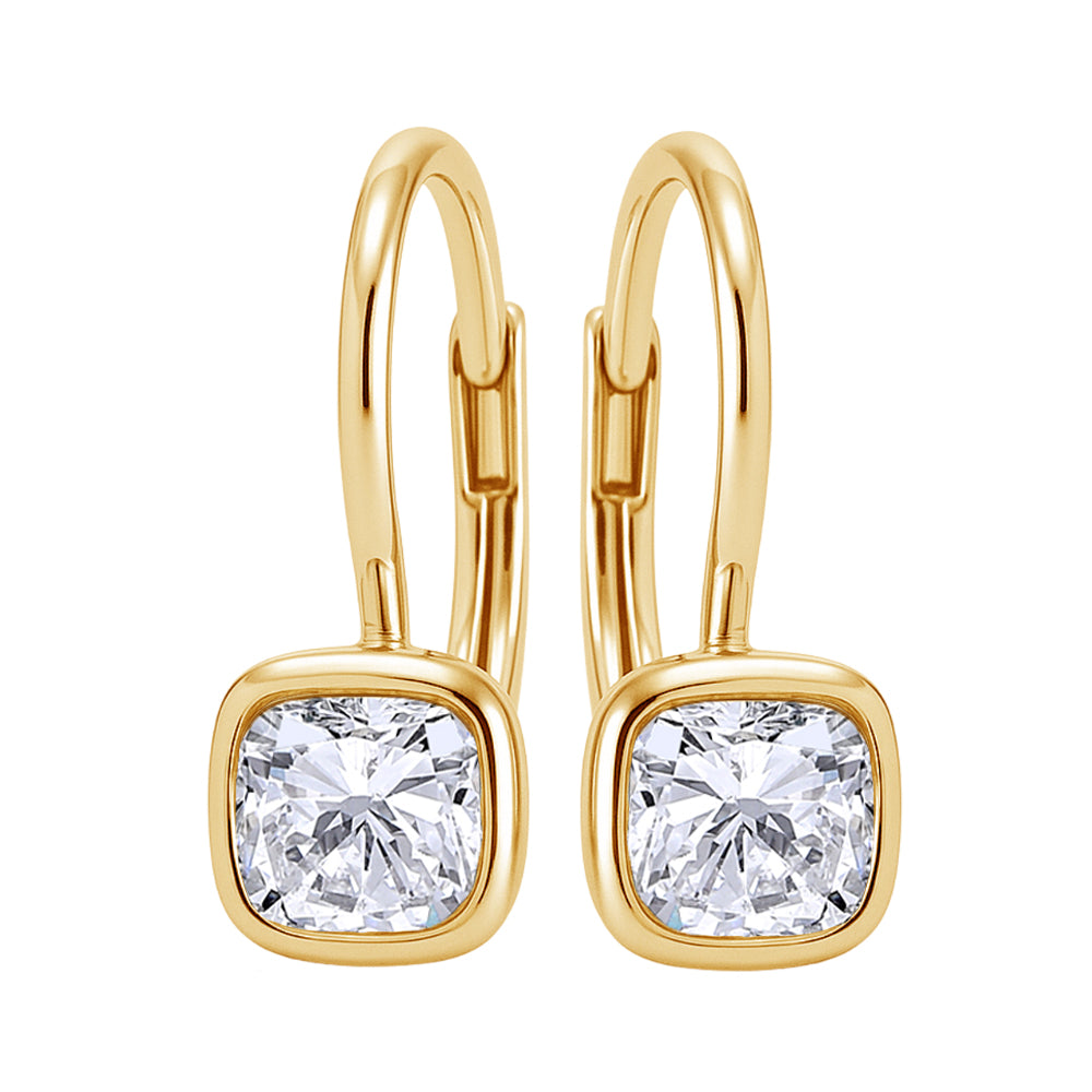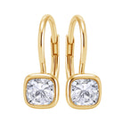 18k yellow gold bezel set cushion cut diamond on French wire earrings J VS 1.80ctw GIA