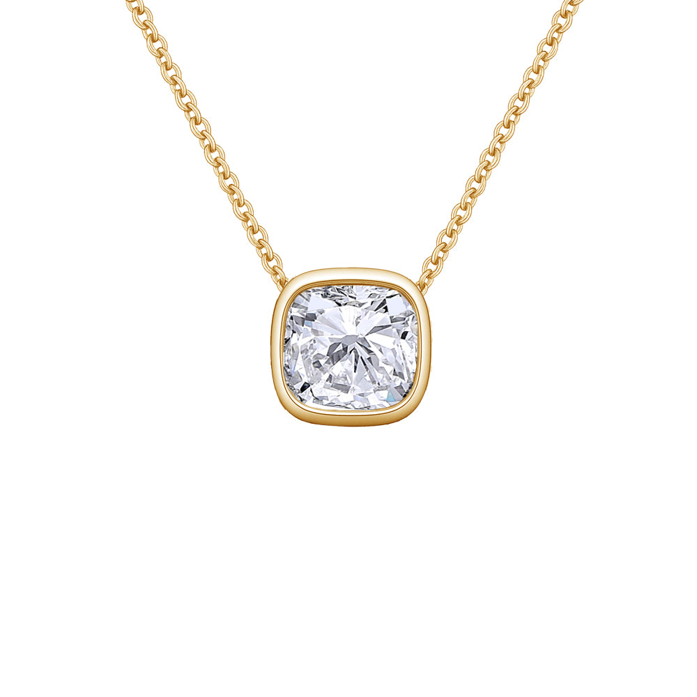 18k yellow gold bezel set cushion cut diamond on chain necklace E SI1 0.72ctw GIA