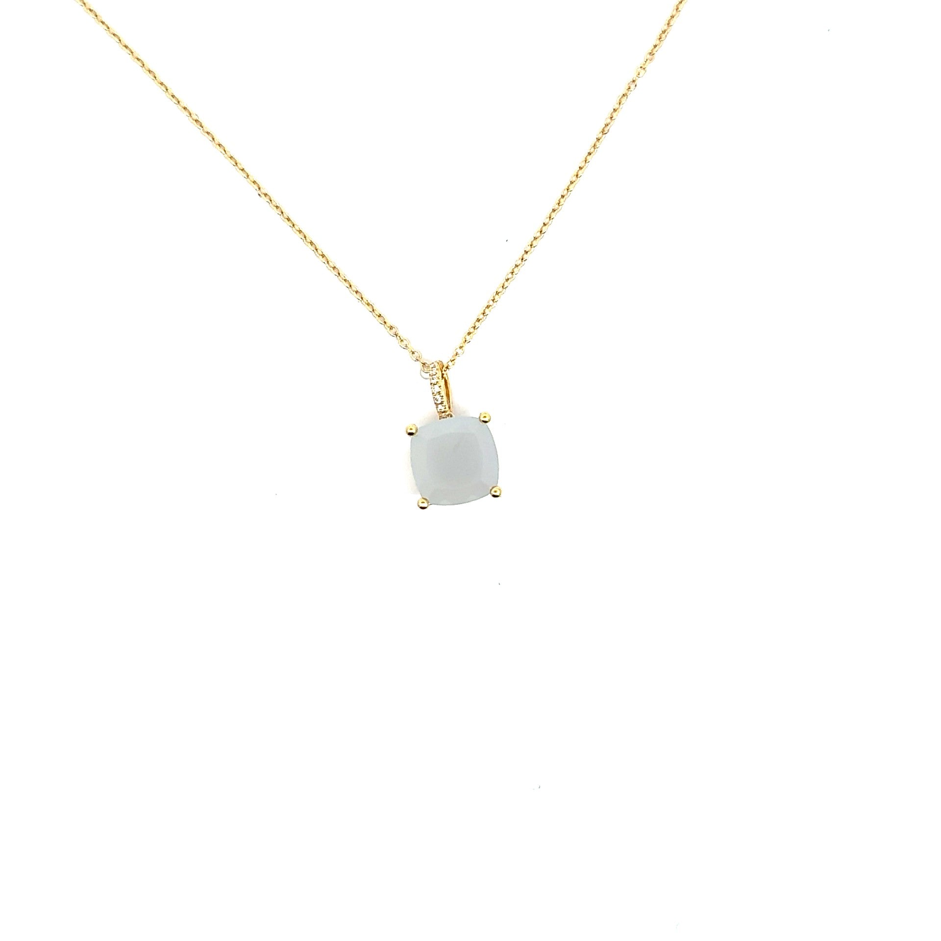 18k yellow gold chalcedony on diamond bail on chain necklace (0.03CTW)