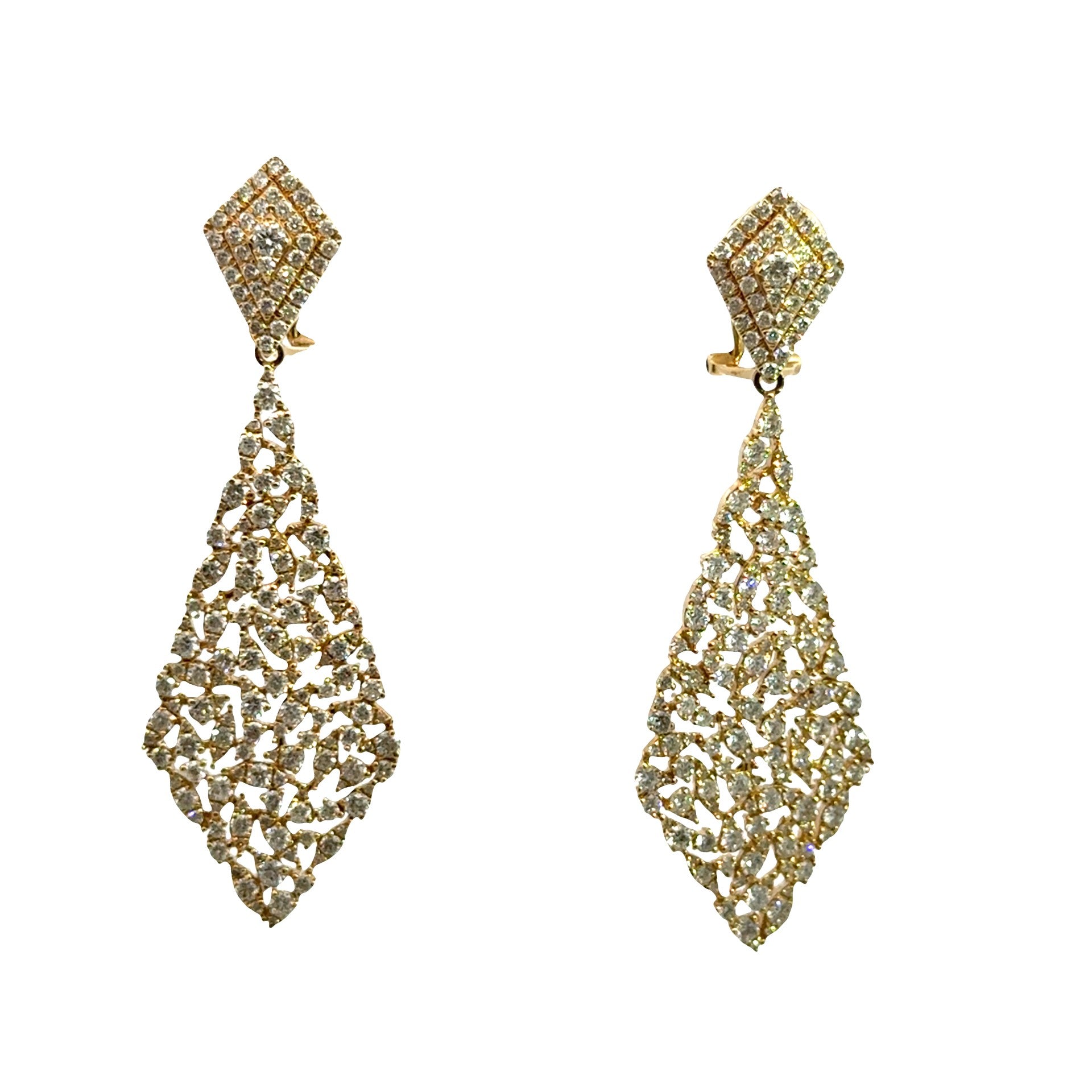 14k yellow gold pave diamond marquis shaped tops with marquis shaped diamond cluster drops 4.99ctw