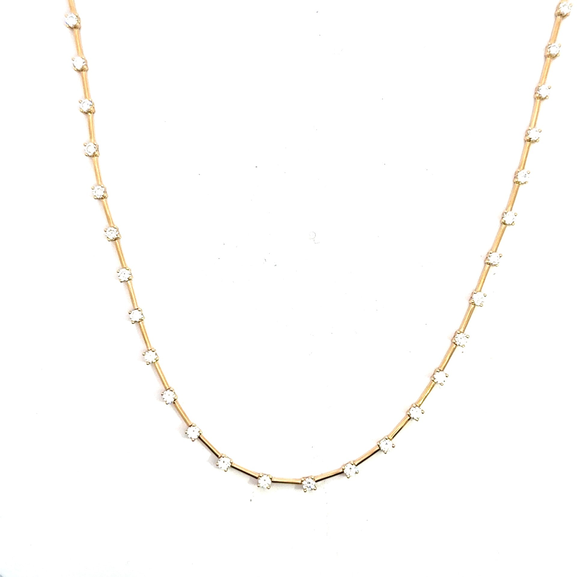 18k yellow gold 4 prong set diamond stations and gold bar necklace 45 dia 3.32ctw 17"