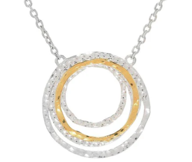 Gurhan hammered open round sterling silver with hammered 24k yellow gold open circle overlay pendant on chain necklace 16-18"