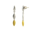 Willow Double drop earrings in sterling silver flakes, 1 gold vermeil flake at the bottom. Designed by Gurhan.