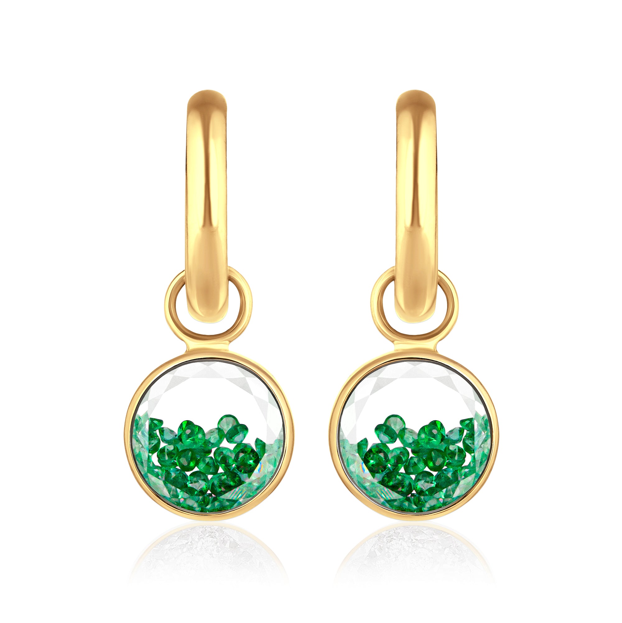 Moritz Glik 18k yellow gold huggie earring with emeralds enclosed in white sapphire kaleidoscope shakers 0.68ctw