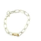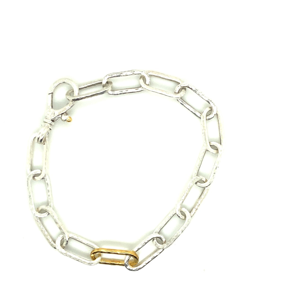 SS HANDMADE OVAL LINK BRACELET W/24KY ACCENTS